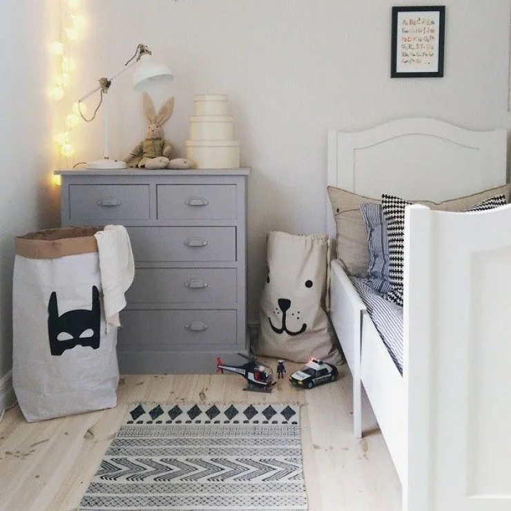 Light tones and cute boyish accessories. Thanks Mommo Design.