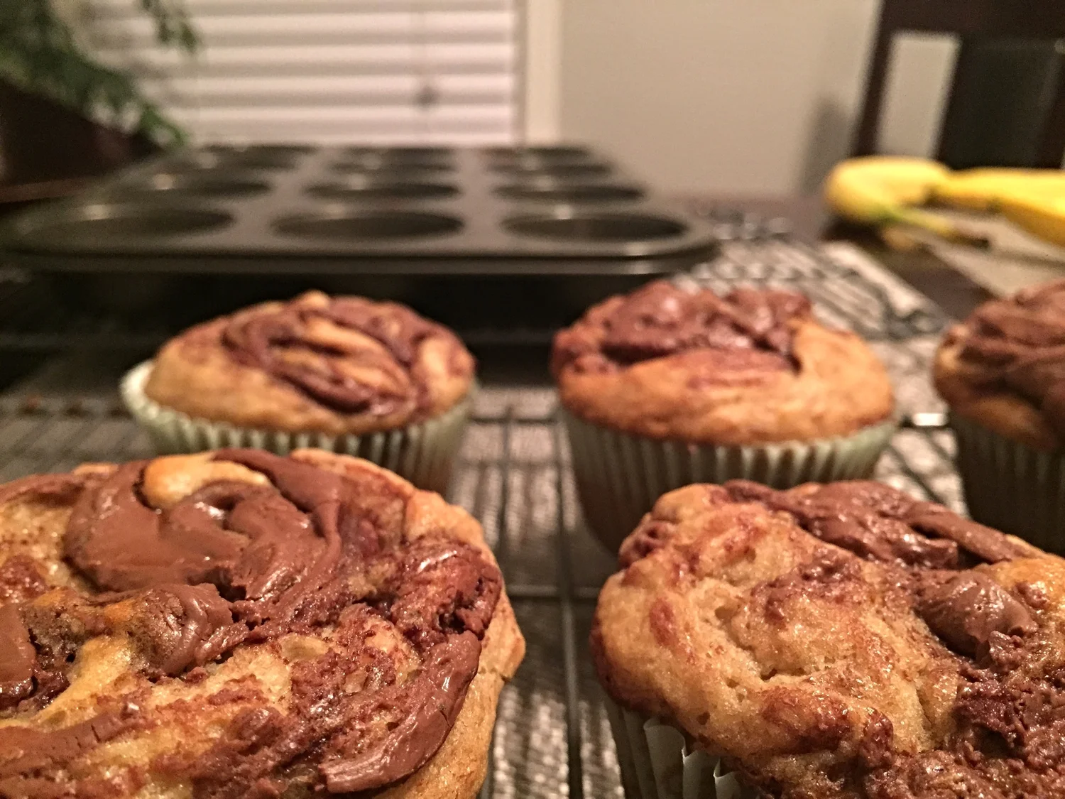 When the bag starts to reach capacity, I know it’s time to make something with a few of them. And until I come across banana centric recipes besides pancakes, muffins, and breads- these are the winners! A while back I shared my recipe for Sweet Potato Banana Bread. This time, it’s Banana Nutella Swirl Muffins. Ugh. To die for. It’s basically a classic banana bread muffin with a little twist. Or a little swirl rather. Go forth and prosper people. These muffins won’t let you down.